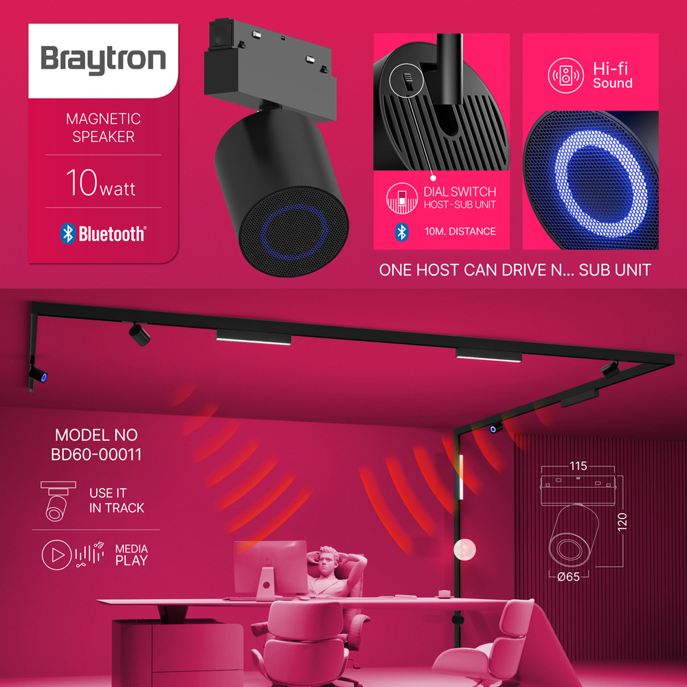 Zvučnik za magnetsku šinu M20 10W 48VDC crna BRAYTRON BD60-00011