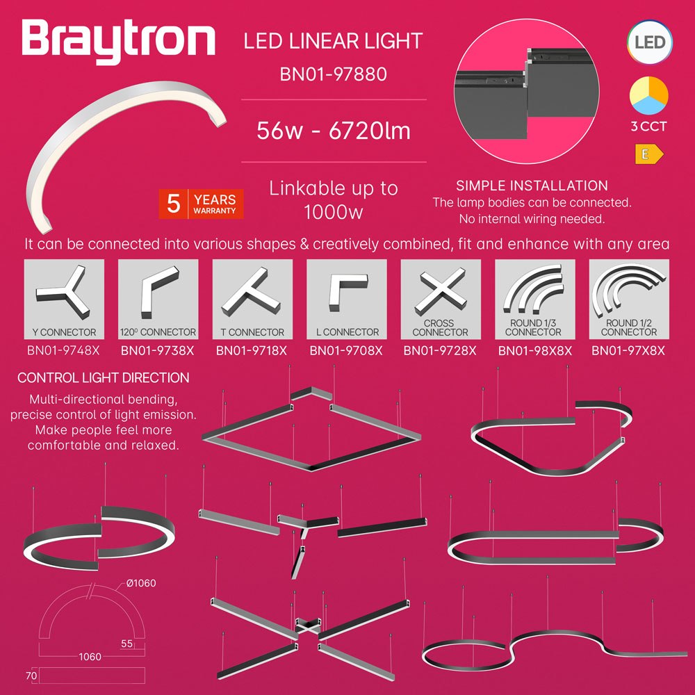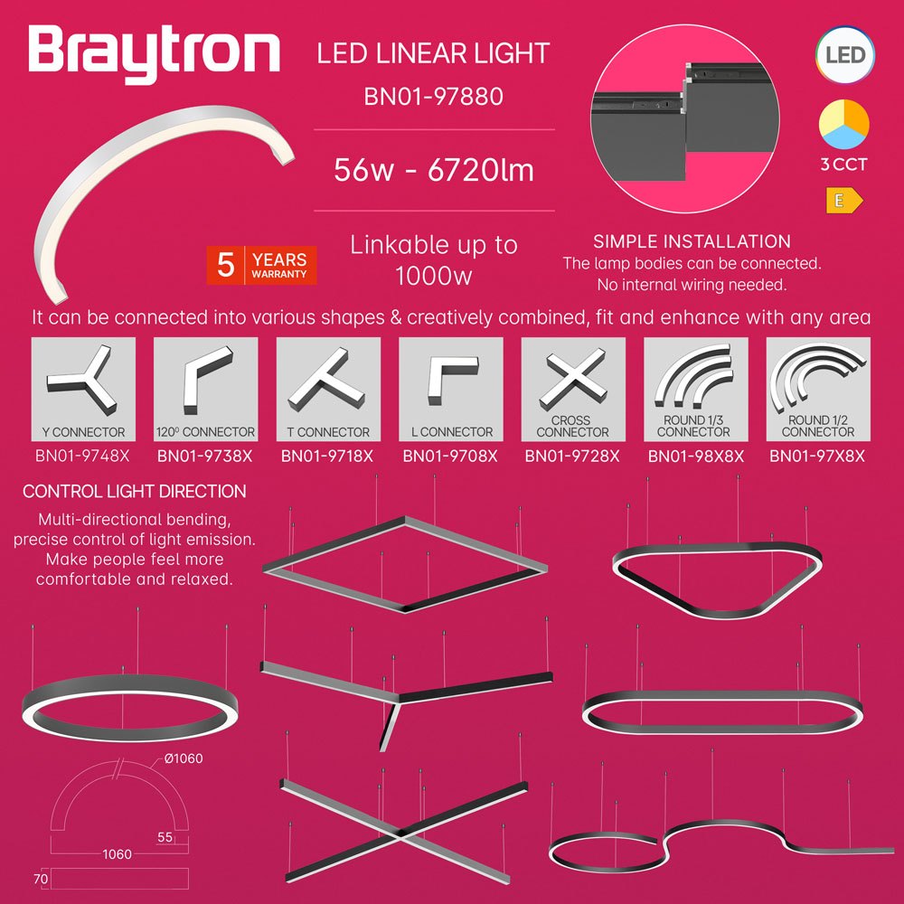 Konektor 1/2 kružni za linearnu svjetiljku 56W 3CCT 6720lm fi1060mm IP20 bijela ALINE BRAYTRON BN01-97880
