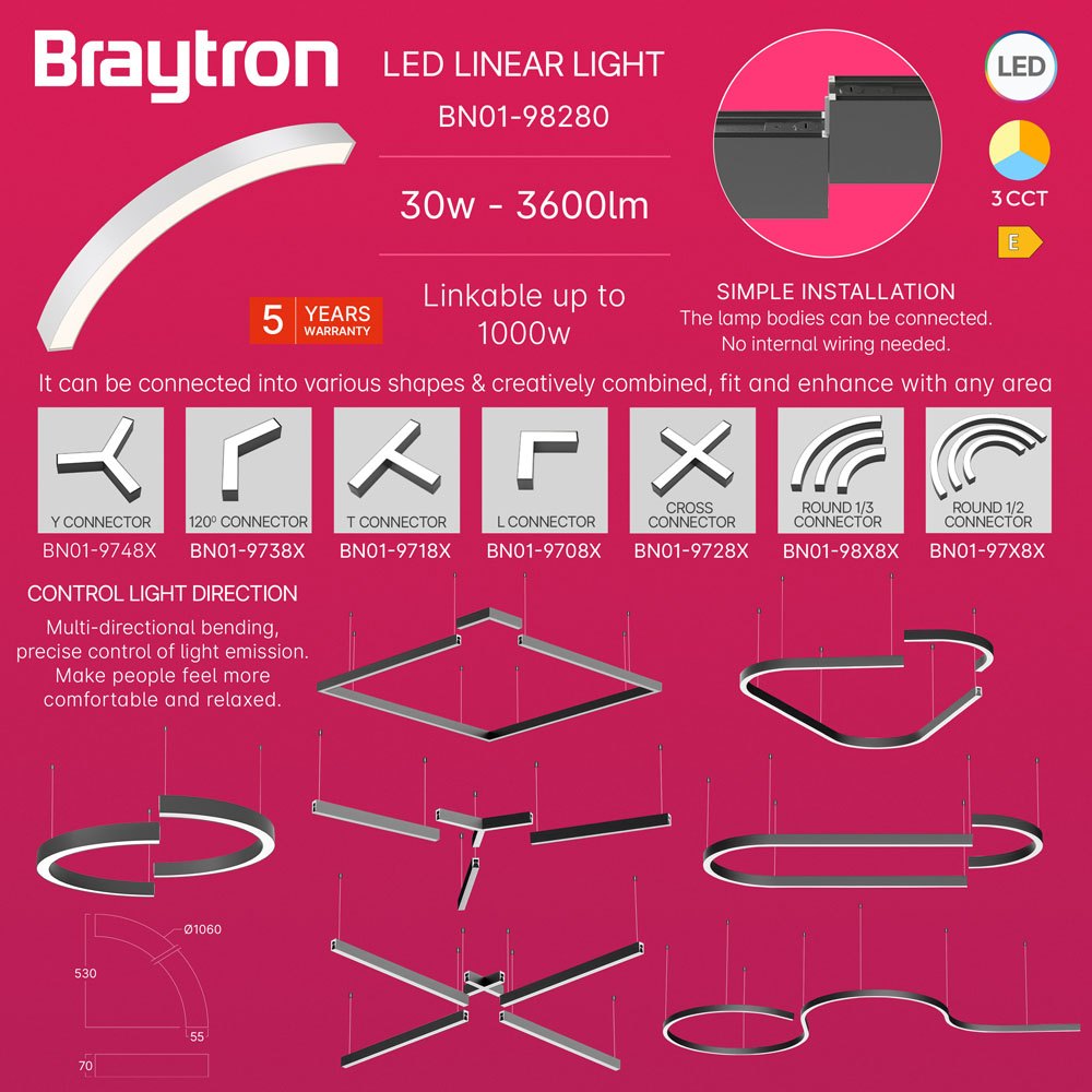 Konektor 1/4 kružni za linearnu svjetiljku 30W 3CCT 3600lm fi1060mm IP20 bijela ALINE BRAYTRON BN01-98280