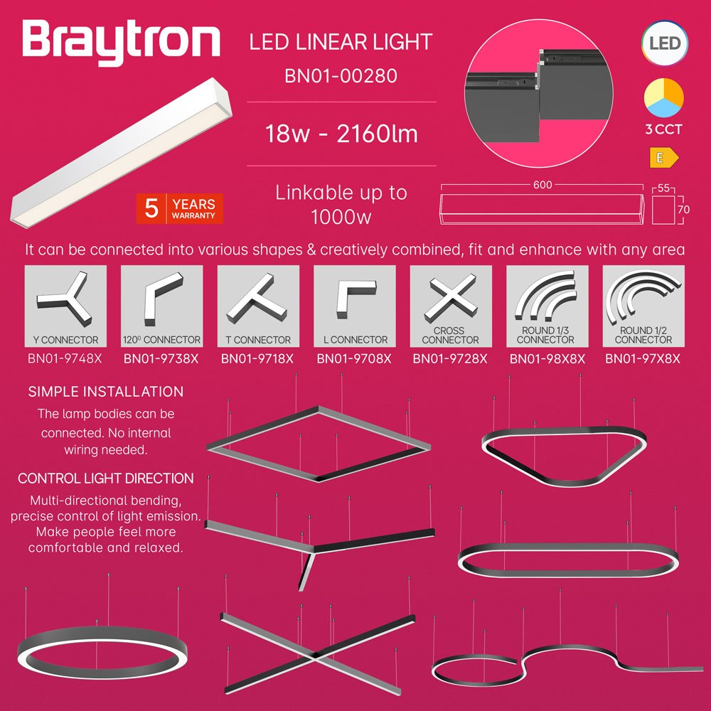 Linearna svjetiljka 18W 3CCT 2160lm 600mm IP20 bijela ALINE BRAYTRON BN01-00280