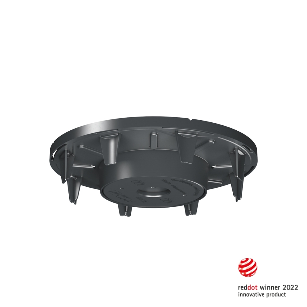 | Za betonske konstrukcije u mjestu Dostupni su instalacijski otvori od 100 mm do 180 mm. Precizno poravnanje zahvaljujući integriranim oznakama Integrirano pričvršćivanje čavlom za jednostavnu ugradnju Jednostavno otvaranje udarcem čekića Težina 0,099 kg Veličina 205 × 205 × 40 mm Materijal PP Promjer 204 mm Otvor za ugradnju 100 mm |