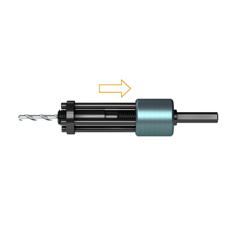 | Automatsko izbacivanje bušaće jezgre Jednostavna zamjena pilica za rupe Nosiva konzola za pilice za rupe od 38 do 127 mm Dostupno kao set Težina 0,451 kg Veličina 150 × 50 × 50 mm Za promjere kružne pile od 38 mm Središnja bušilica 35 mm, 6 |