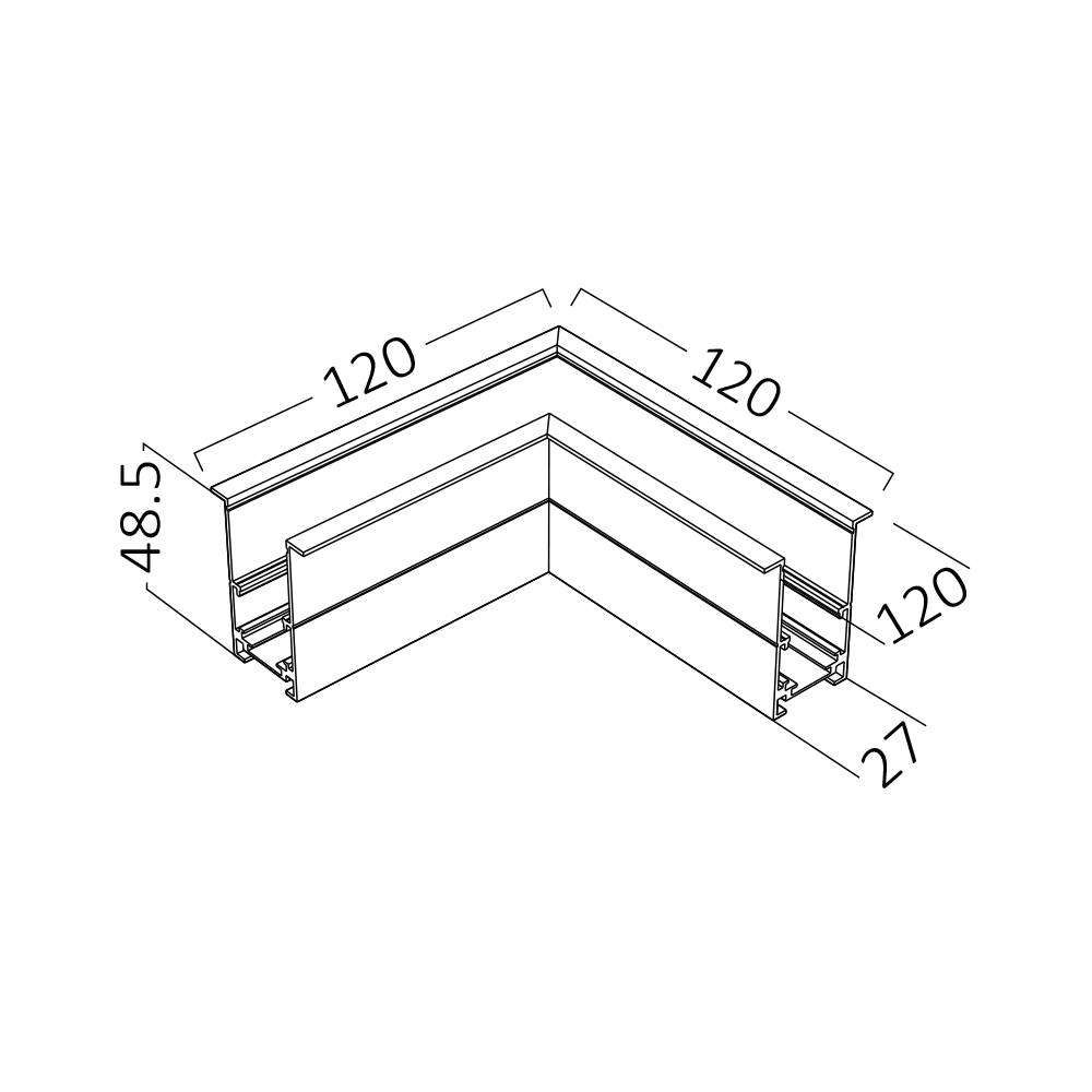 Šina za magnetsku rasvjetu 120x48,5x120mm M20 crna kutna BRAYTRON BY41-10401